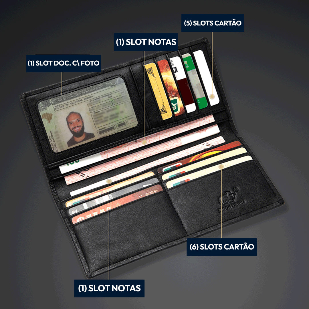 - Interior Features: Coin pocket, banknote compartment, photo holder, documents